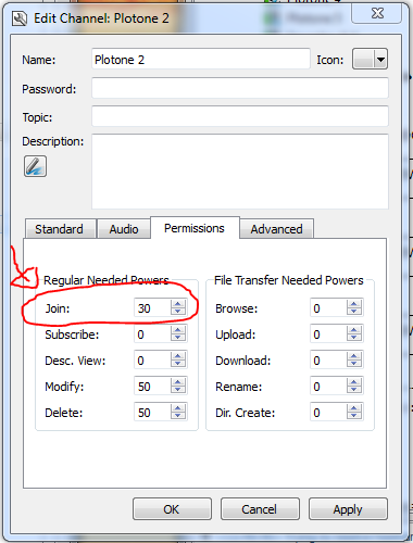 2) per il solo pannello "permission" vorrei lasciare "Join:" modificabile dall'utente, mentre tutti gli altri ad un valore predefinito (default) non modificabile dall'utente che lo crea.