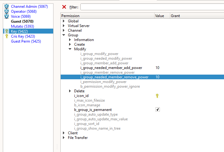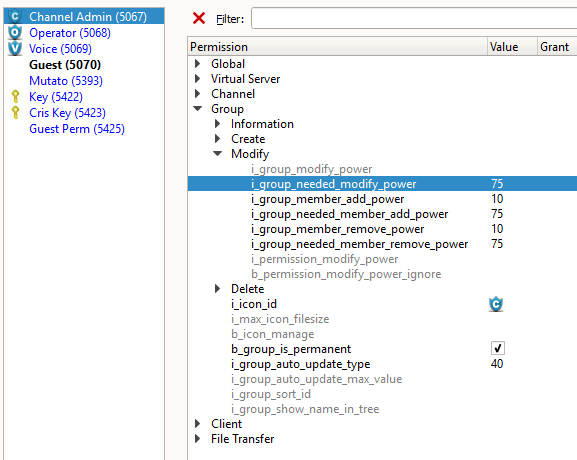 ho un altro problema per qualche strano motivo non il channel admin non riesce a dare il permesso pur avendo l'add a 10, Allego il settaggio del permesso channel admin: Allegato 131 e il permesso key Allegato 132