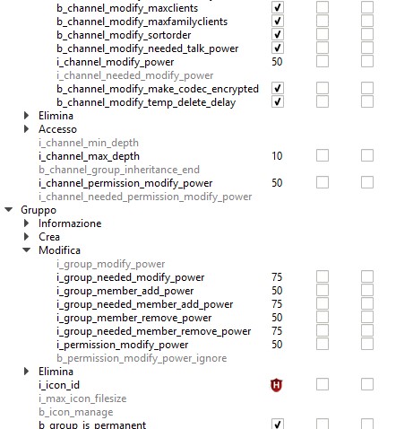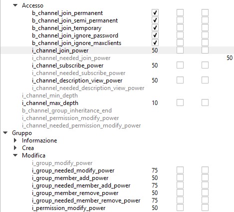 Ti manca il i_channel_permission_modify_power a 50 (non si vede dallo screen ma assicurati di avere anche i_channel_modify_power a 50).