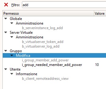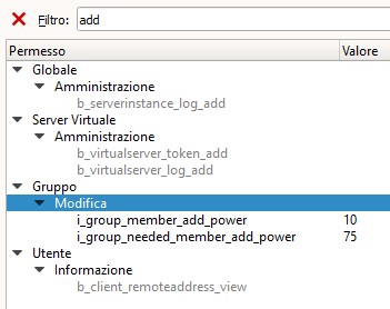 Salve ho settato cosi Screenshot_91.jpg l'add del channel admin e cosi il needed del operator Screenshot_92.jpg il problema é che il channel admin non riesce a dare l'operator (cosa che dovrebbe fare visto che il channel admin ha l'add a 10 e l'operator il needed a 10)